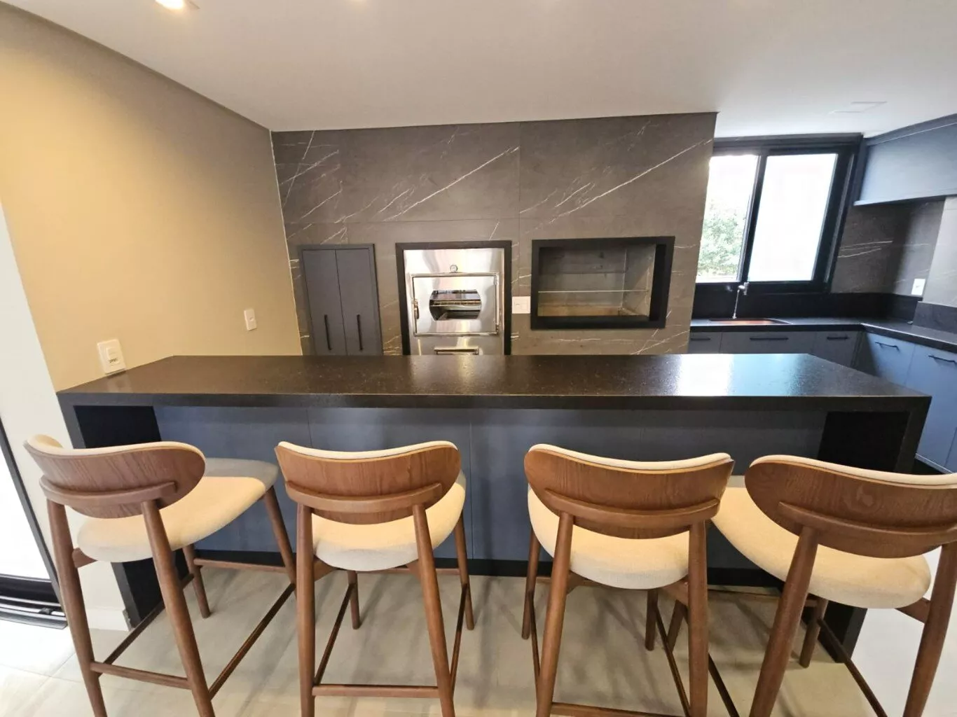 - Tubulação de espera de tomadas para carregamento de veículos elétricos em todas as vagas de garagem;